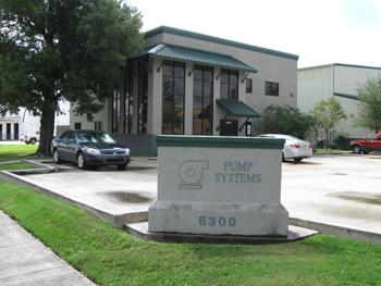 Pump Systems was established in 1973, and moved into this new facility at 6300 Humphreys Street, Harahan, LA in 2001 to provide sales, service and parts to our valued customers. Our shop facility was designed so that our employees would be provided the space for quality of craftsmanship and safety in their work area. The floor area has two sets of overhead cranes, one set in each bay with individual work stations. The parts area is climate controlled for quality of inventory for all parts so that our customers will receive good, clean, and reliable parts when they place their order. Our office area is spacious and open which gives our employees ample individual office space for a comfortable working environment. (CLICK HERE to view our shop work area, testing and parts departments)